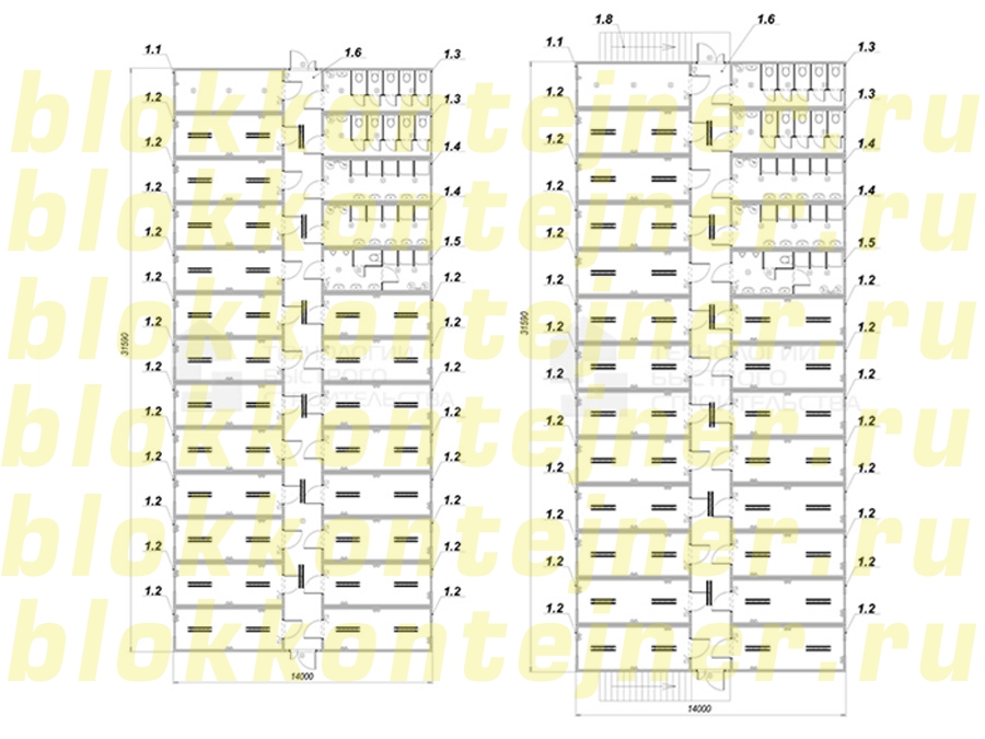 ГлавнаяПроекты Коммерческие предложения → Общежитие модульное двухэтажное для строителей